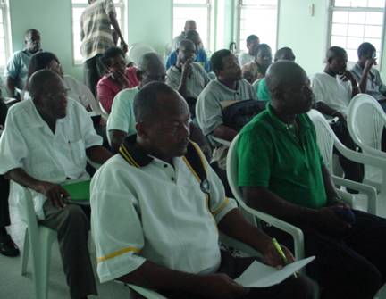 (see photos below) Minister of Agriculture, Lands, Forestry, Fisheries, Energy and Public Utilities Gregory Bowen has conducted two meetings with Extension Officers to discuss the operations and effectiveness of the newly implemented Agricultural Emergency Rehabilitation Project (AERP). The meetings, which took place on November 19 and 26 at the Produce Chemist Laboratory and Melville Street Fish Market Conference Room respectively, focused on concerns expressed by farmers, as well as the Extension Officers. Accompanied by Permanent Secretary Lana McPhail and Acting Chief Extension Officer Randolph Shears, Minister Bowen noted the importance of the AERP as part of the overall recovery process for the Nation and the urgency of having the Programme operate as efficiency as possible to ensure the revival of the agricultural sector. Some of the issues addressed included:
